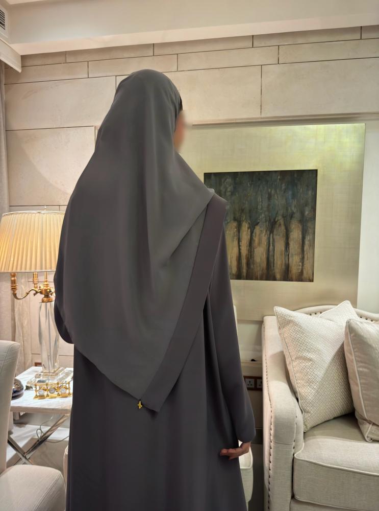 من مجموعة ديلي شال لصيف 24، عباية كلاسيك باللون الرمادي وبقصة A-line تجمع بين الأناقة والراحة خفيفة الوزن.